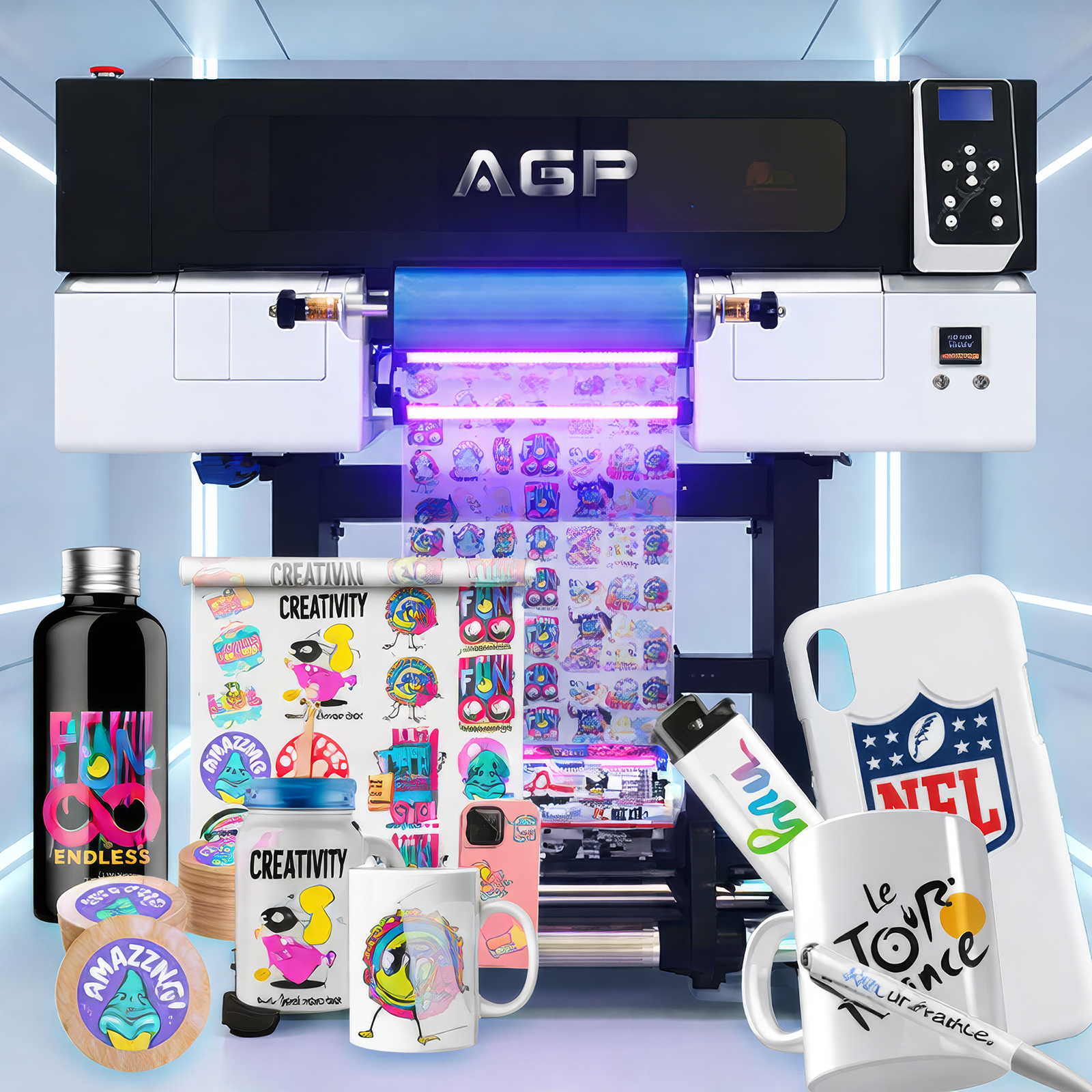 Personalización DTF UV con relieve y brillo premium, ideal para múltiples superficies, resistente al agua y al sol para acabados de alto impacto.
